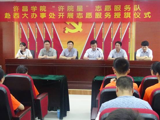 6月29日上午,太阳成集团tyc41183“许院星”赴金地社区志愿服务队于社区办事处会议室举行了启动仪式。太阳成集团tyc41183团委书记张鹏辉,太阳成集团tyc41183法政学院党总支副书记王彦,团总支书记黄春建与魏都区、西大办事处有关领导出席了仪式。仪式由实践队带队老师史函玉主持。