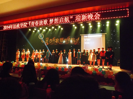 本次晚会以“青春放歌,梦想起航”为主题,旨在演绎法政学子如骄阳般灿烂多姿的青春风采。晚会节目形式多样、内容丰富,包括歌曲、街舞、T台走秀、小品、相声等十四个节目,为现场的观众呈现了一场丰富的视听盛宴。整场晚会伴随着开场舞《给力青春》的欢快旋律响起拉开了本场晚会序幕;经典民歌《桃花红杏花白》韵味十足;流行歌曲《beautiful love》深情唯美;古典舞《风酥雨忆》动作优美、引人入胜;街舞《明天》动感的音乐、有力的舞蹈动作展现了我院学生独具特色的青春活力与风采;由樊润豪等人自编、自导、自演的小品《中国好学生》以当下流行的电视节目《中国好声音》为原型,生动形象的讲述了大学生的追梦历程,无论是男嘉宾霸气的亮相,还是女嘉宾华丽的出场,都赢得了在场观众的阵阵掌声;由包新宇等人精心编排的走秀节目更是大胆创新,引入了假发元素,由我院学生代表分饰大学生、法官、乘务员等角色,展现了我院学生对于未来的美好憧憬,绽放着青春与梦想的光芒 ;相声《满腹经纶》幽默的语言、默契的合作,更是赢得了现场观众的赞誉和肯定,由我院草帽摇滚组建的凉茶乐队带来的《喜欢你》、《平凡之路》让全场观众感受到了摇滚的热情和魅力;雷人舞中动感的音乐、演员们滑稽夸张的动作将整个晚会气氛推向了高潮;诗朗诵高亢的声音、充沛的感情表达了对伟大祖国浓浓的爱与崇敬;最后的民歌《共筑中国梦》引发了全场师生共同努力构建中国梦的共鸣。整场晚会精彩不断,高潮迭起,台下阵阵掌声。在悠扬的歌声中,法政学院2014年“青春放歌,梦想启航”迎新晚会至此圆满落幕。