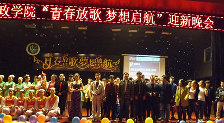 10月31日晚7点,法政学院2014年“青春放歌,梦想起航”迎新晚会在大学生活动中心顺利举行,并取得圆满成功。法政学院副院长寇鸿顺、党总支副书记王彦、团总支书记黄春建以及部分教师莅临晚会现场,我院全体新生和11、12、13级共六百余名学生观看了此次晚会。